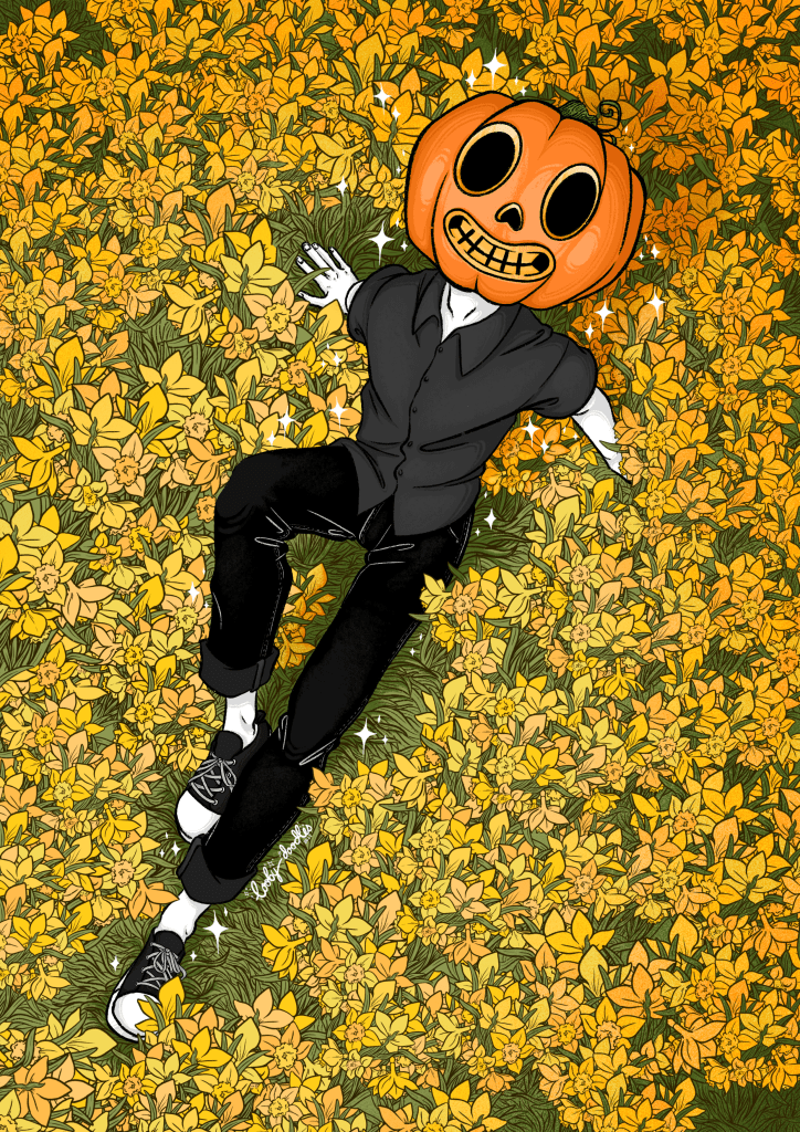 Months went by and I couldn’t stop thinking about how much I enjoyed working with these characters, and how desperately I wanted to finish the animated comic . For a while, I debated whether to wait until this October to continue the series, or to make it a year round project… then I took the plunge and created two Springtime pieces featuring ’Pumpkin Lass’ and ‘Pumpkin Lad’!