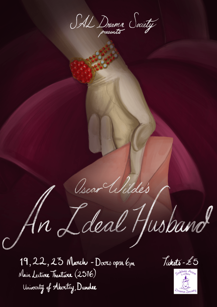 The first production I created promotional materials for was Oscar Wilde’s ‘An Ideal Husband’ in Spring of 2018. For the pieces, I focused on the pink letter and brooch which play a prominent role in the scandalous plot.