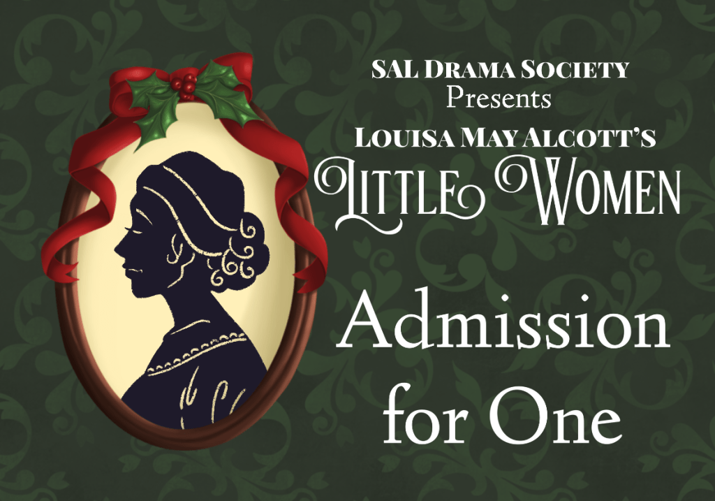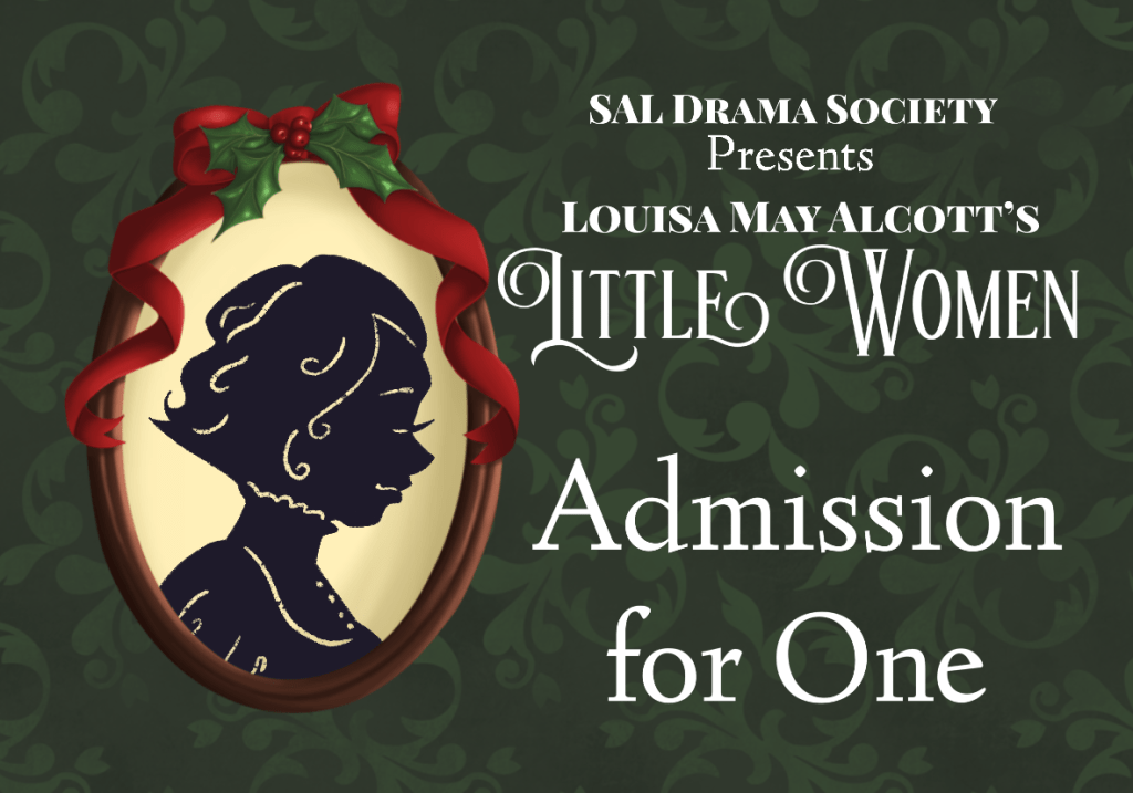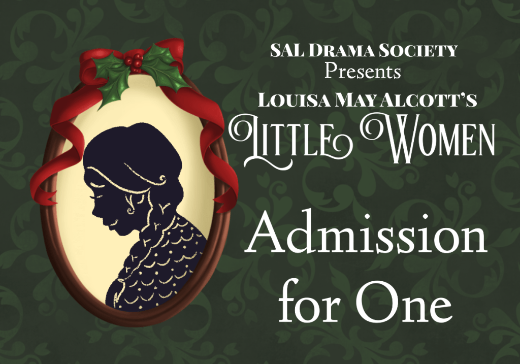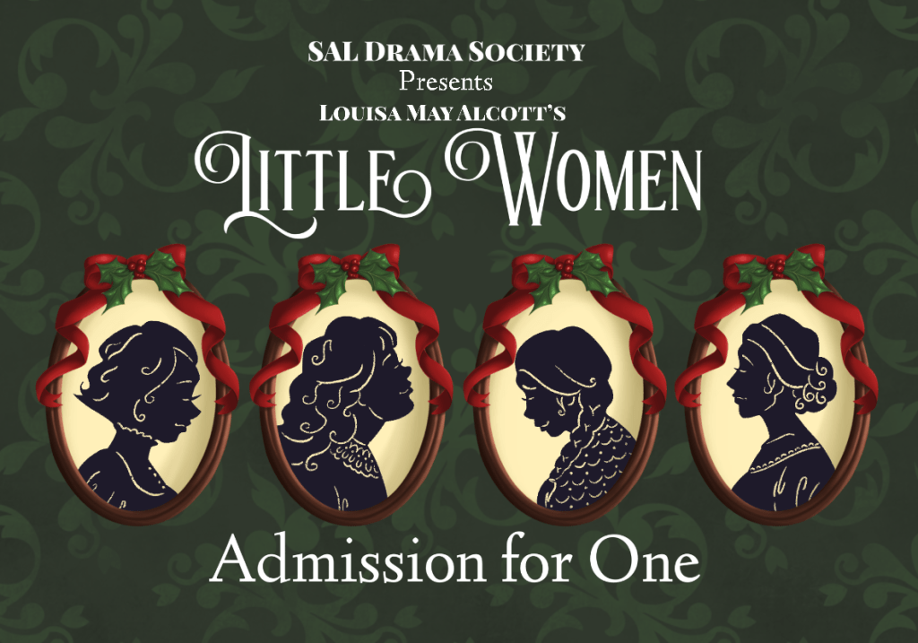 For this production, there was a desire to incorporate festive elements and the initial concept was of a fireplace mantle lined in holly, with silhouette portraits of each character above. In the end we decided to focus just on the silhouettes and a painting of the sisters, which worked out better on a portrait layout. When it came to the tickets, the client could not decide on which character to choose, so I made 5 ticket designs; one of each sister and one with all four. These became fun collectables between folks who bought tickets for the show!